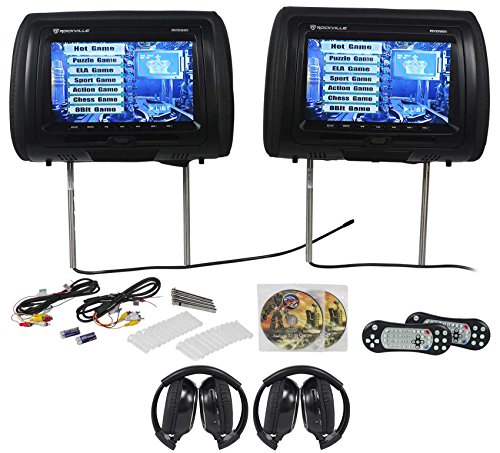 -. Title : Package: Rockville RVD951-BK Pair of 9" Black Dual DVD/USB/SD Car Headrest Monitors W/ Front Loading DVD Player in Each Headrest + (2) Video Game Controllers + Covers + (2) Wireless Ir Headphones