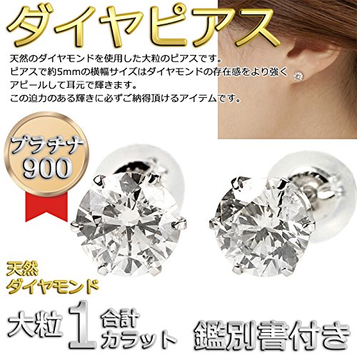-. Feature : パッと見た時の「綺麗☆彡」と思う嬉しいオドロキ、身にまとった人だけが感じる満足感を感じて下さい。 / ピアスにしては大粒の合計1カラットのダイヤモンドピアス。 / ピアスを落としてしまう不安や指や耳にかかる負担を最大限軽減するため、キャッチ部分にも贅沢にシリコンとプラチナ素材のダブルキャッチを採用。 / 鑑別書付き(鑑別カード)。