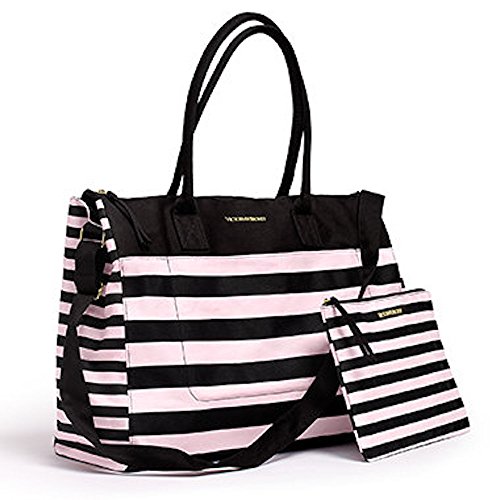 -. Title : Victoria's Secret Weekender Tote Black/Pink Stripes