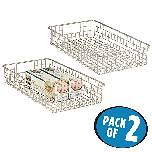 mDesign Wire Storage Basket for Kitchen, Pantry, Cabinet - Pack of 2, Slim, Satin