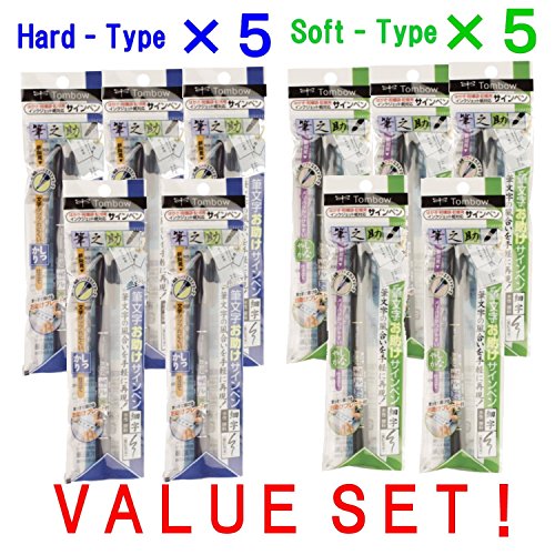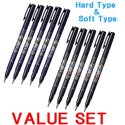 Tombow Fudenosuke Brush Pen - Hard Type & Soft Type Eaah 5 Pens Total 10 Pens Arts