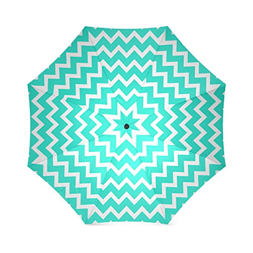 -. Title : Fashionable Turquoise White Chevron Pattern Compact Travel Windproof Rainproof Umbrella