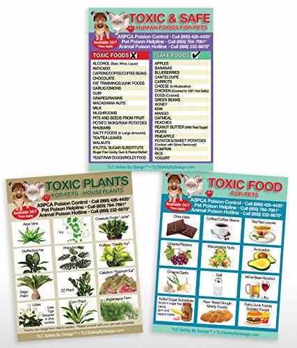 Set of 3 TOXIC & SAFE FOODS, TOXIC PLANTS & TOXIC FOODS Variety Pack Poison for Pets Dogs Cats Emergency I.C.E. Home Alone Refrigerator Fridge Safety Magnets