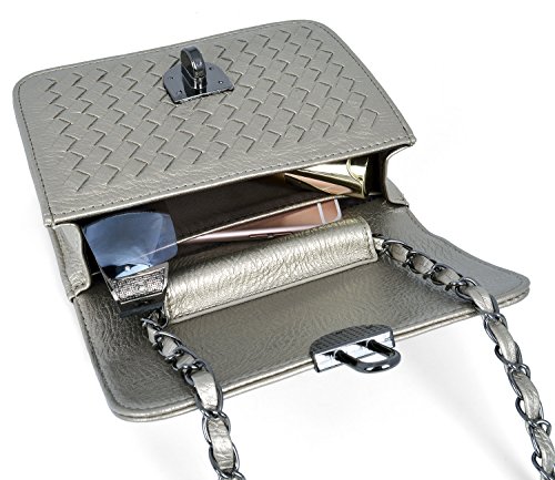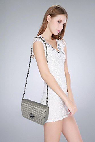 -. Feature : DURABLE & LIGHTWEIGHT== Our womens crossbody bags is make of high quality Weave PU, gunmetal front twist lock, black silk satin lining. / ROOMY COMPARTMENT== Our womens handbags have one compartment, compact but spacious, perfect to hold cash, cards, checkbook, keys, some make up, phone, and so on for normal using / The metal&PU Chain Strap allows you to wear the purse over your shoulder or as a crossbody (Drop length: 22 in) / DIMENSION (L x W x H)==7.6 x 2.8 x 5 in / SPECIAL DESIGN==Appealing Weave and Flapover design, Practical and stylish for every day use, dressy wear and travel.