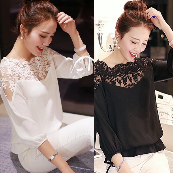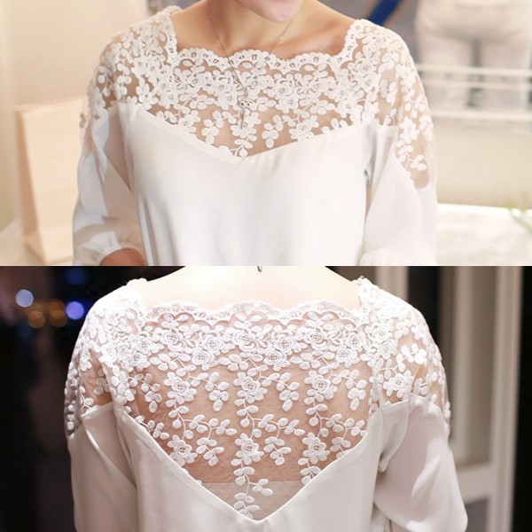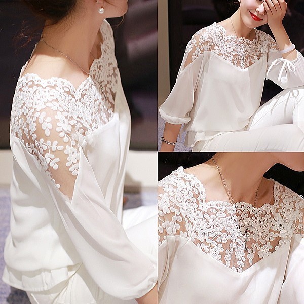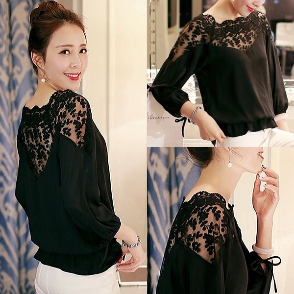 | 商品名 | シフォン シースルーレース 7分袖 ブラウジング ブラウス | ||