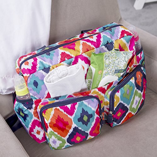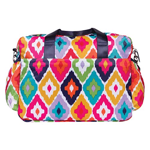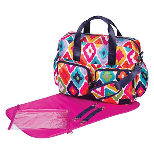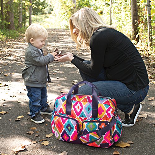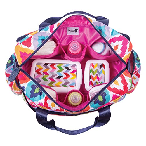 ReleaseDate : 2017-10-23 Studio : Trend Lab Publisher : Trend Lab Binding : Baby Product Product Description Form meets ultimate function and space with the French Bull Kat Deluxe Duffle Diaper Bag. Deluxe Duffle Diaper Bags, manufactured by Trend Lab, are spacious enough for parents with multiple children and feature sophisticated style, several organizational pockets, a durable wipe-off exterior and extreme versatility. This Deluxe Duffle exterior is made from durable polyester which features French Bull's signature IKat print and the interior features a coordinating raspberry nylon lining. Navy top handle straps plus the navy adjustable removable shoulder strap allow for carrying versatility. The removable stroller straps can be used for easy attachment to the stroller. Duffle features a zippered top closure with 4 spacious exterior zippered pockets, 2 exterior side bottle pockets, 6 interior organizational pockets, and an interior zippered pocket. Set includes a coordinating changing pad and a clear "dirty duds" zippered pouch. Deluxe Duffle Bag measures 16 in x 12 in x 6 in. ? Coordinating changing pad ? Removable stroller straps ? Dirty duds zippered pouch ? 2 exterior front zippered pockets ? 2 extra-large exterior zippered pockets ? 2 exterior side bottle pockets ? Zippered top closure ? 6 interior organizational pockets ? Interior zippered pocket ? Adjustable and removable shoulder strap ? Durable hardware 0