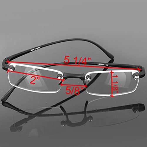 -. Feature : Great as your main pair for travel or a wonderful extra pair to keep in a handbag / Closed size of case : 6" x 2 3/16" ( 15cm x 5.5cm ) / Diopters power: +1.00/+1.50/+2.00/+2.50/+3.00; Material: Acrylic Lenses; Temple Material: Durable Memory Nylon-Polyamides / Size: Temple length: 5 3/4"(14.5cm); Frame width: 5"(13cm); Weight: Glasses with Case Approx. 43g/0.09lb / Package includes: One piece of reading glasses with case