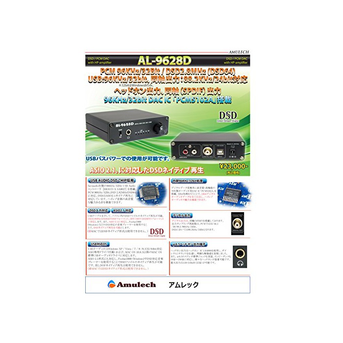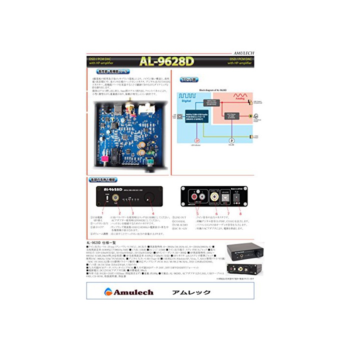 원본상품명: Amulech ヘッドホンアンプDAC AL-9628D
