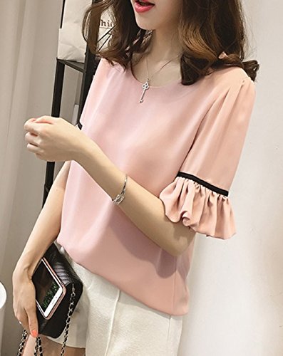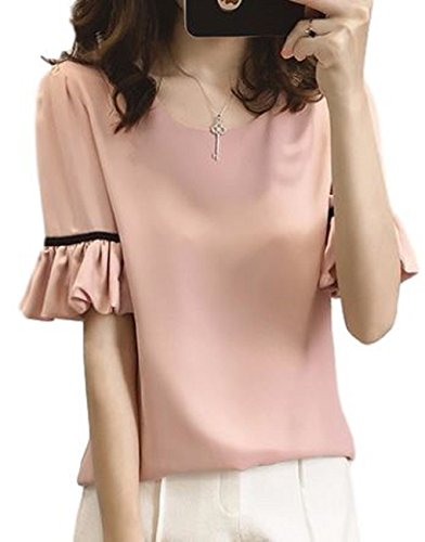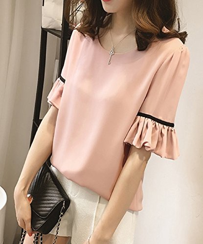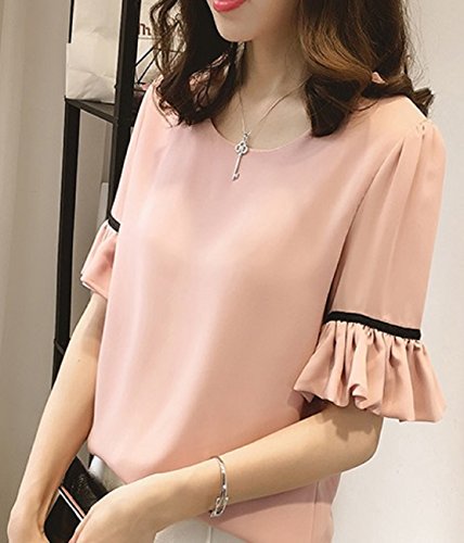 -. Title : (ニブンノイチスタイル) 1/2style 半袖 丸首 オシャレ フリル シフォン ブラウス プルオーバー レディース