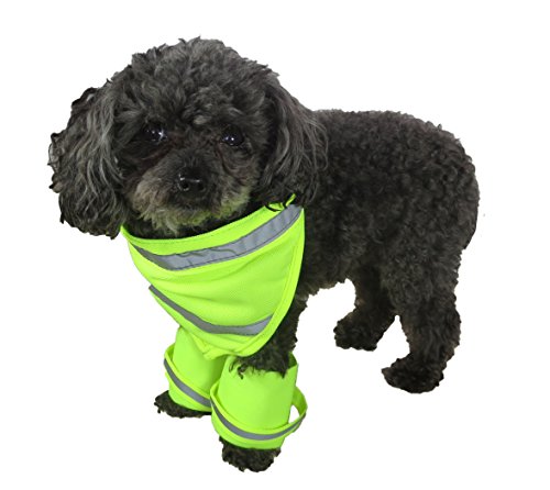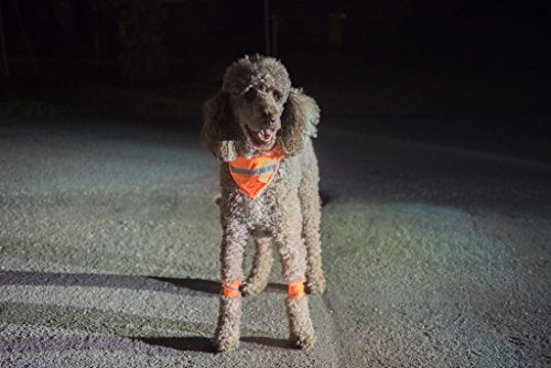 -. Feature : BREAKTHROUGH TECHNOLOGY - Safe and effective dog neck and leg gear for Mans Best Friend. Increased visibility reduces the risk of your precious pet being hit by a car or being lost at night. You will no longer need to go out on a search and rescue mission because you will easily be able to see your dog in the dark. Works with your dogs existing collars, leashes, and webmaster harness. / COMFORTABLE FOR YOUR DOG - Light weight reflective dog scarf with velcro straps, allows you to easily adjust to the right size for your pet. Leg wraps are made with elastic to comfortably fit your dog. Fits on Teacup Poodles, Pitbulls, German Shepherds, and other canines and animals. Comes in three different sizes; small, medium, and large. / ALWAYS BE SEEN At Night. Comes in Neon Orange and Neon Yellow both with white grey reflective tape. Whether in an urban setting or wildlife site, your dog will easily be visible to oncoming traffic during your night walkabouts. The high visibility reduces chances of a hunting accident, auto injury, or losing your pet. / 100% REUSABLE - Made from polyester so it can easily be washed and cleaned after a run or walk with your dog. Paired with your reflective running vest, you and your dog will be the perfect team to take a walk around the block or a hike up the mountain. Pick the right size and these will fit your canine from puppy to adult. / TRUST. Customer service with Elite Pet GearTM is unmatched. We are genuine, honest people you can actually email and talk to. Try us! Your reflective dog bandana and leg wraps are backed by a 100% Lifetime Guarantee.
