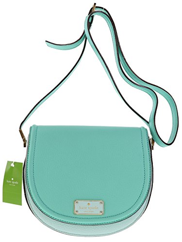Pebbled leather bag has front flap with magnetic closure; Gold-toned hardware