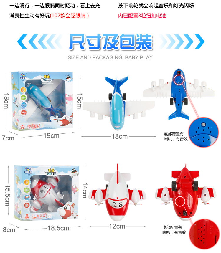 自带灯光 音效。惯性系列飞机可以自动眨眼睛,俏皮可爱。
