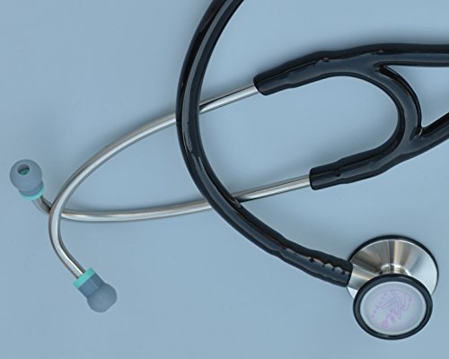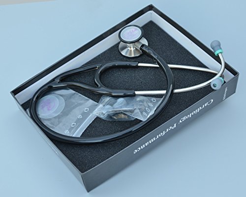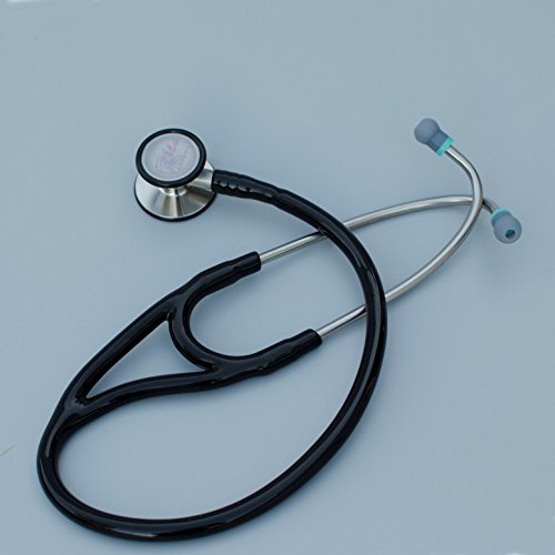 -. Feature : Two diaphragms, Cardiology Performance - Quality / 45mm adult diaphragm + 35mm Pediatric diaphragm; Dual bore tube; 27" tip to tip / Soft ear tips, Angled binaurals - Ergonomic comfort / Thick dual bore tube eliminates external noise - Great Acoustics, Wide frequency range / Stainless steel chest piece, Premium materials, Precise machining - Durable