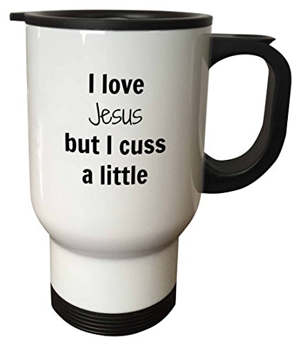 3dRose tm_221879_1 I Love Jesus But I Cuss a Little Travel Mug, 14 oz, White