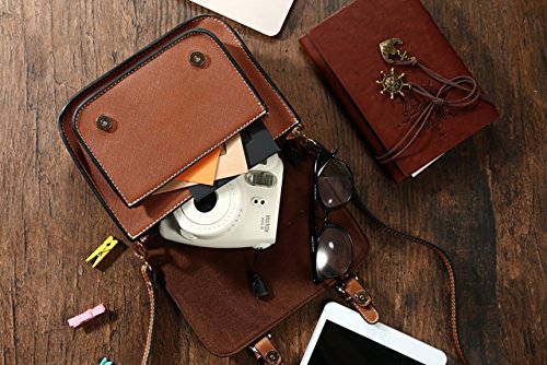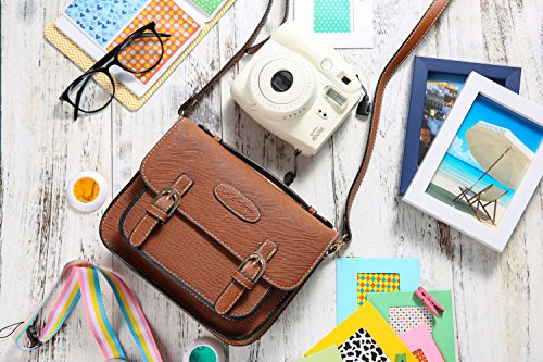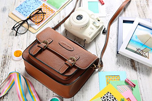 Mini 8 Instant Camera Accessories Case - Lalonovo Retro Vintage PU Leather Bag for Fujifilm Instax Mini 8/ Mini 7s/ Mini 25/ Mini 50s/ Mini 90/ Mini 9 Instant Film Camera with Shoulder Strap (Brown)