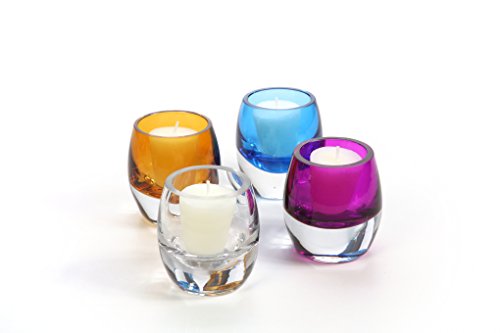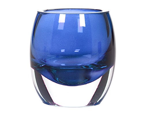 Hosley's Set of 4 Blue Chunky Glass Votive and Tealight Candle Holders. Bonus Buy. Ideal Gift or Use for Weddings, Special Occasions, Votive Candle Gardens, Spa, Aromatherapy
