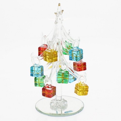 LSArts Glass Clear Tree With Gift Box Ornaments Set