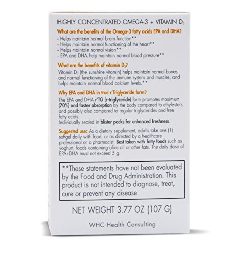 -. Feature : OMEGA-3 1150 mg / High EPA 645 mg / High DHA 400 mg / Vitamin D3 - 1000 IU / rTriglyceride form