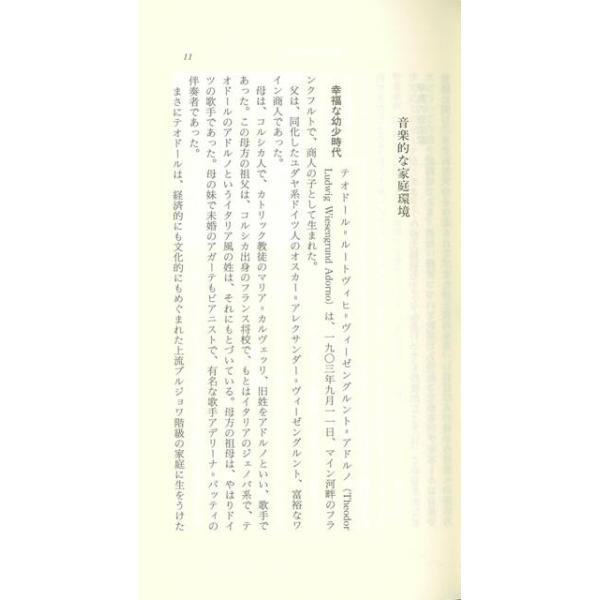 【商品説明】 定価(税込み):918円 値引き:5% OFF 音楽的家庭環境に生を受けたアドルノは,音楽と哲学という二足のわらじをはいて進む。音楽的・芸術的センスに彩られた彼の哲学の視座は,ファシズムの嵐に吹き荒れる現実を暴く厳しい批判に向けられる。人間によって形成された文明が,何ゆえに人間らしい状態へ進むかわりに,たえず新しい野蛮に落ち込んでいくのかが追求される。 バーゲンブック 新品 特価 格安 哲学 宗教 心理 教育 思想 家庭 音楽 環境 音 | |