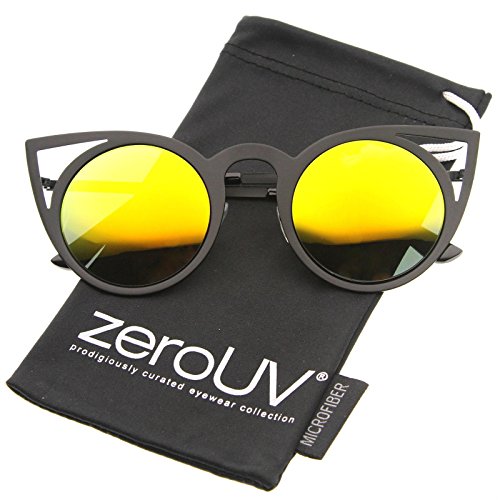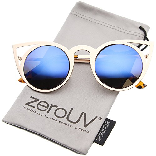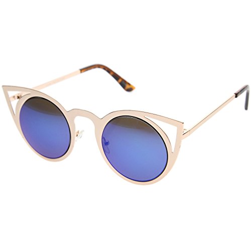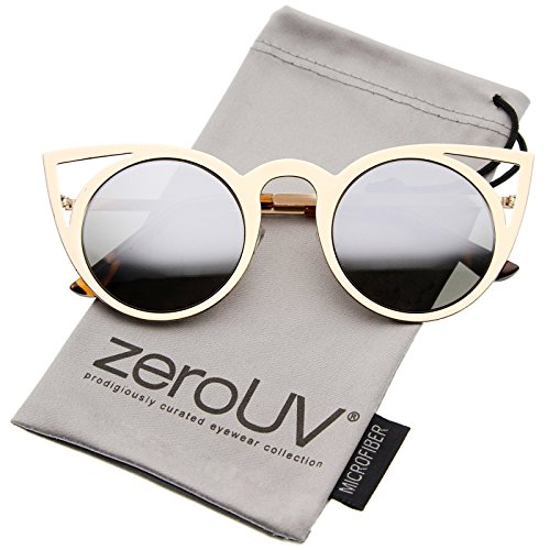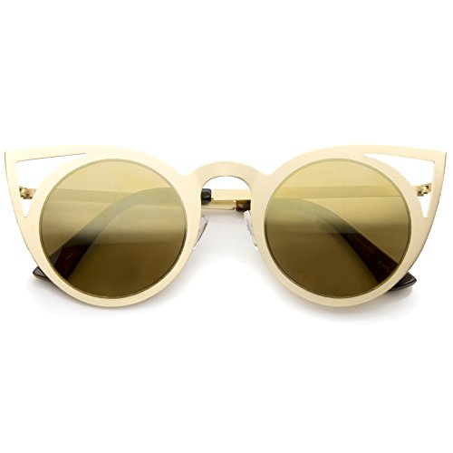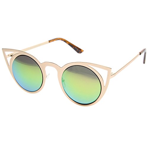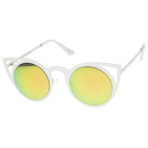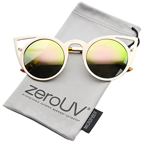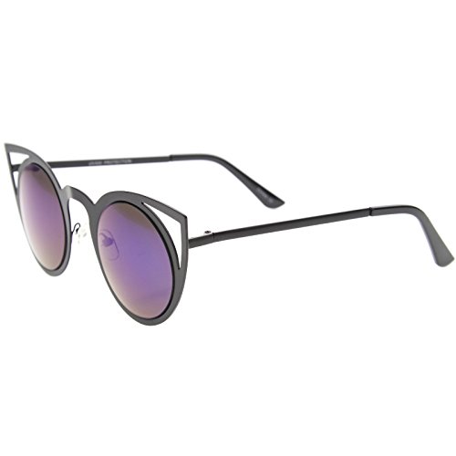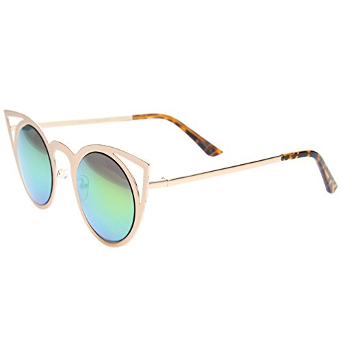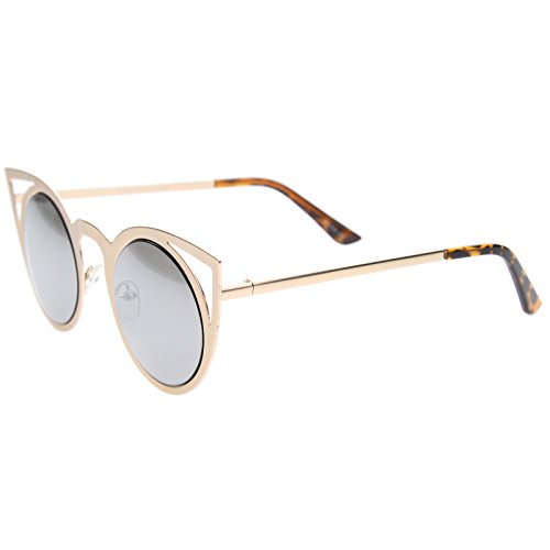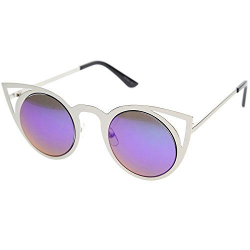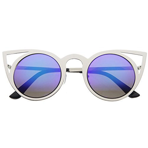 | zeroUV - Womens Fashion Round Metal Cut-Out Flash Mirror Lens Cat Eye Sunglasses |