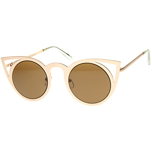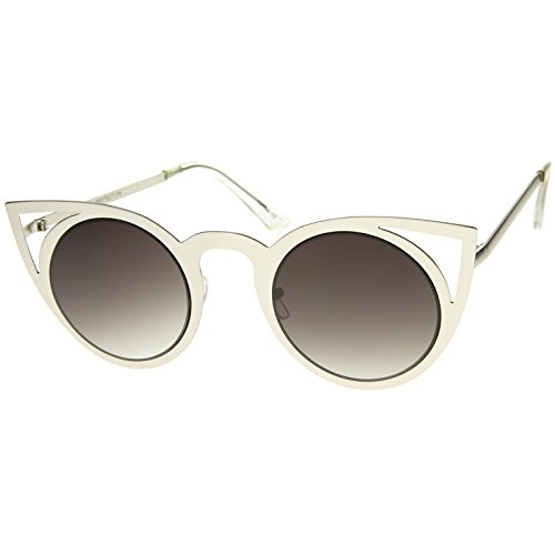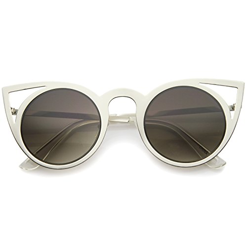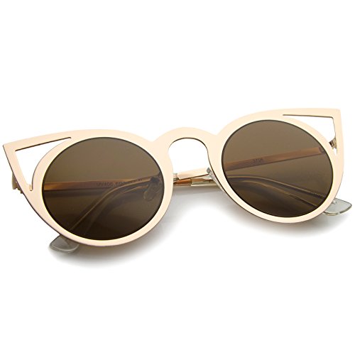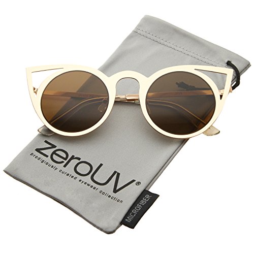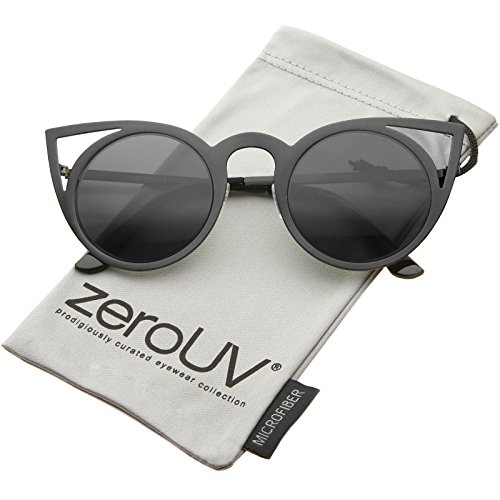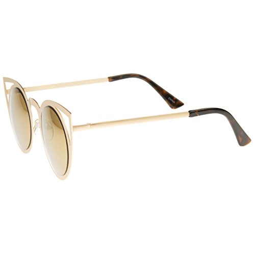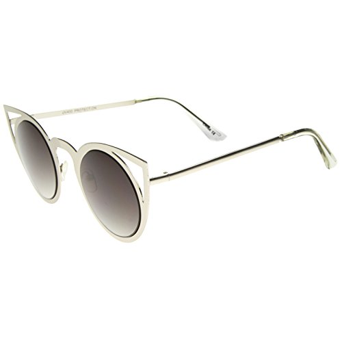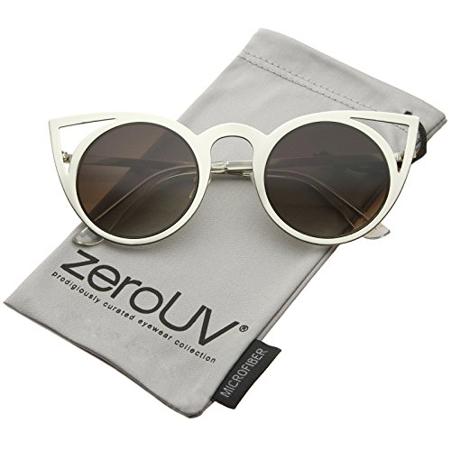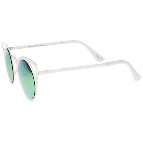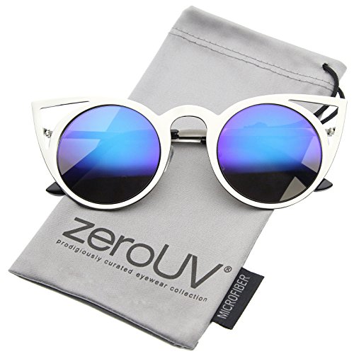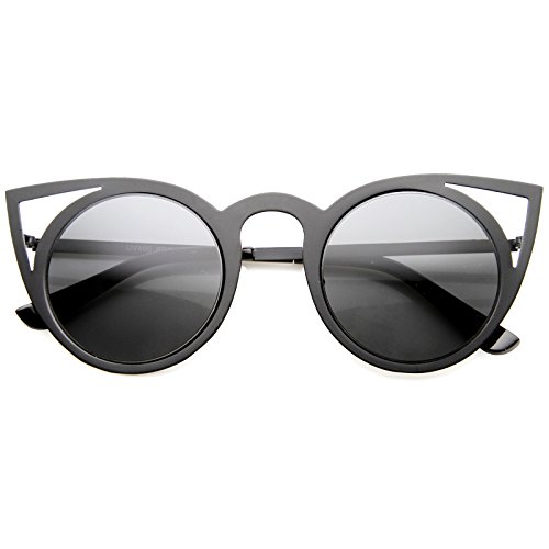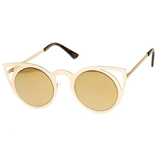 | zeroUV - Womens Fashion Round Metal Cut-Out Flash Mirror Lens Cat Eye Sunglasses |