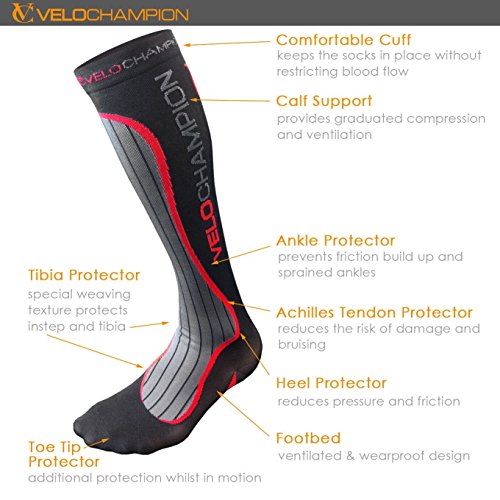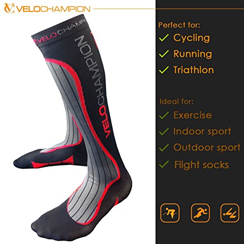 -. Title : VeloChampion Compression Sports Socks - Black - For Running, Cycling, Triathlon