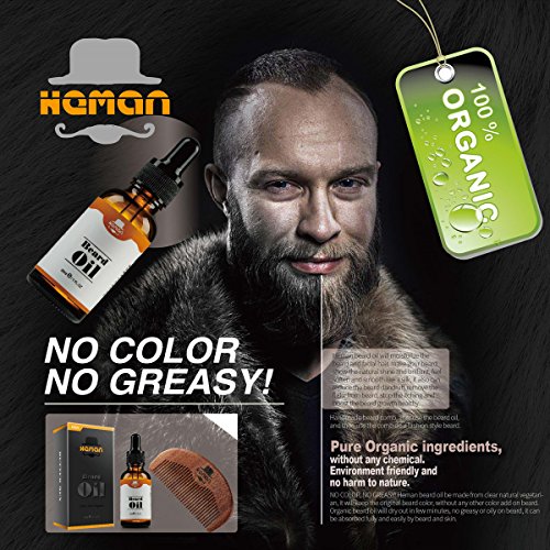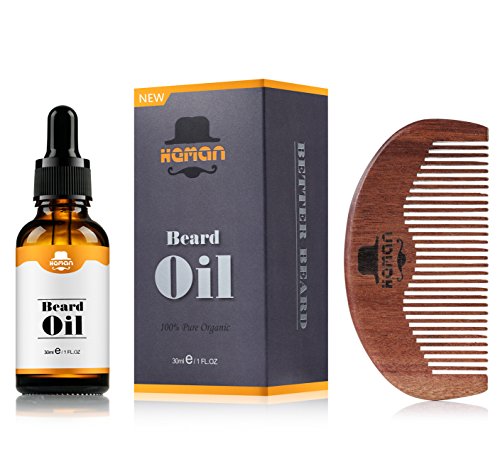Beard Oil Kit for Men by HEMAN, Men’s Beard Oil with Comb, 100% Natural & Organic, 1 fl.oz. Mustache & Goatee Growth Beard Oil, Beard Grooming...