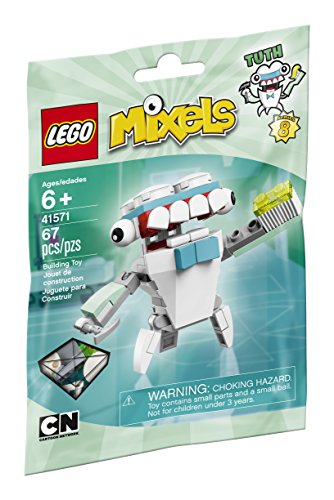 -. Binding : Toy -. Brand : L.E.G.O Mixels -. EAN : 0673419249690 -. Feature : It features big teeth, a toothbrush arm and posable joints, plus a toothpick for extra play / Prevent tooth decay among Mixopolis citizens with tooth-obsessed dentist Tuth of the L.E.G.O MIXELS Medix tribe / Collect all 3 Medix in L.E.G.O MIXELS Series 8 to build the MAX! / Stands over 2" (6cm) tall / Watch all your favorite MIXELS characters on Cartoon Network -. IsAdultProduct : 0 -. Label : L.E.G.O -. Manufacturer : L.E.G.O -. Model : 6137159 -. MPN : 6137159 -. PackageQuantity : 1 -. PartNumber : 6137159 -. ProductGroup : Toy -. ProductTypeName : TOYS_AND_GAMES -. Publisher : L.E.G.O -. ReleaseDate : 2016-06-01 -. Studio : L.E.G.O -. Title : L.E.G.O Mixels 41571 Tuth Building Kit -. UPC : 673419249690 -. Warranty : No Warranty