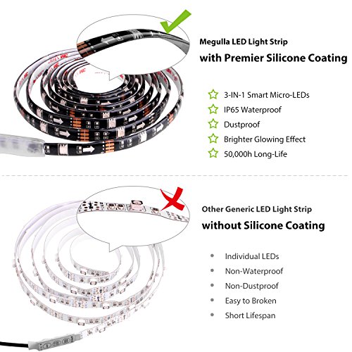 - 【Packaging Contents】4x Megulla® 20inch RGB LED strips, 3x12inch strip connector cables, 1x24key remote control, 4x4pin connectors, 1xUSB power cable, 1x welcome guide, 24-month limited warranty and 30-DAY money back guarantee.