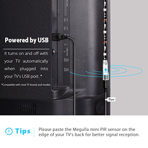 Bias Lighting for TV, Megulla Accent Light Strips -Medium (79inch) , USB-Powered RGB LED Strip with Wireless Remote, 16 Colors, Dimmer -for HDTV, Home Theater and Desktop Monitors -Black, Universal