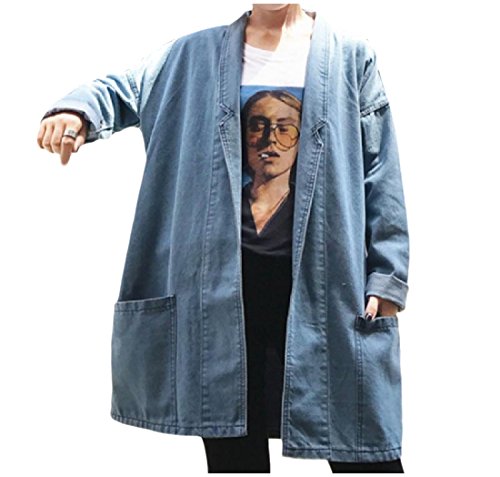-. Title : Tootess Women Casual Open Front Fold-Collar Mid-long Jean Jacket Coat