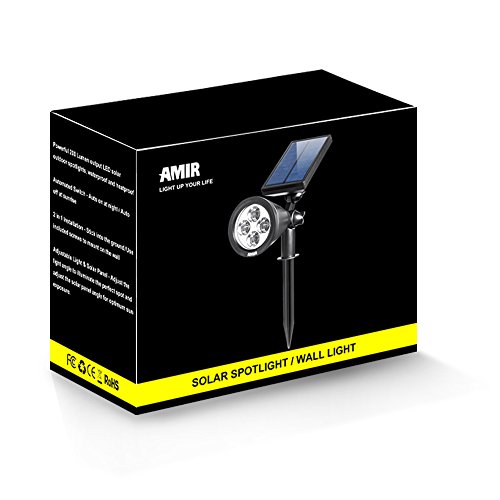 AMIR 2 in 1 Solar Spotlights, Upgraded Solar Garden Lights Outdoor, Waterproof 4 LED Landscape Lighting, Solar Wall Lights with Auto On/ Off for Yard Driveway Pathway Pool Tree Patio (Changing Color)