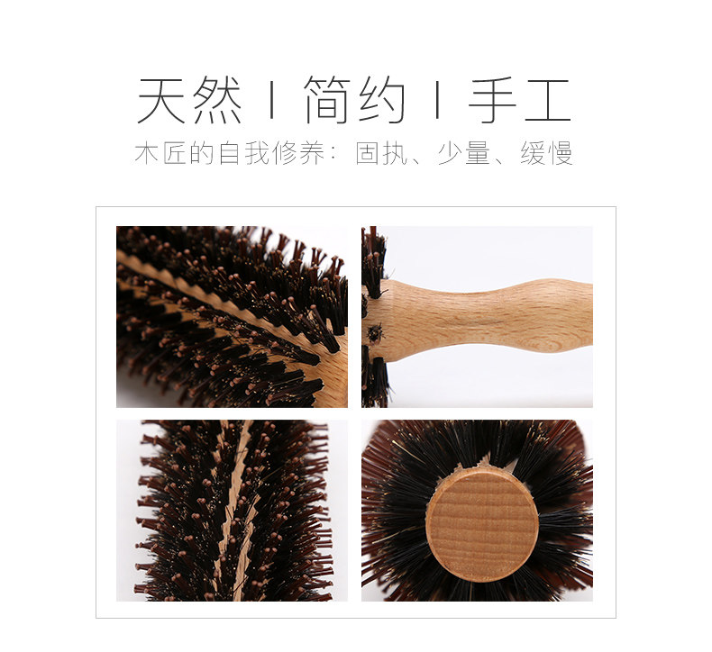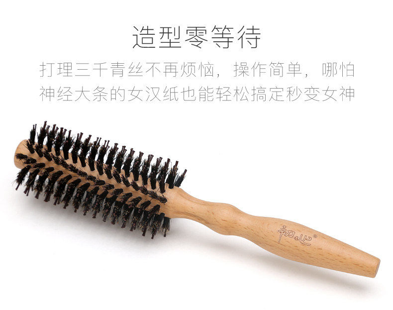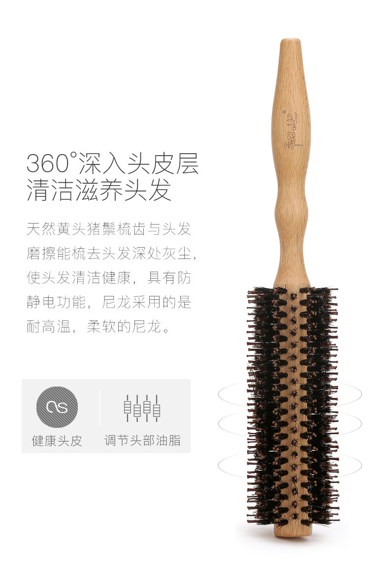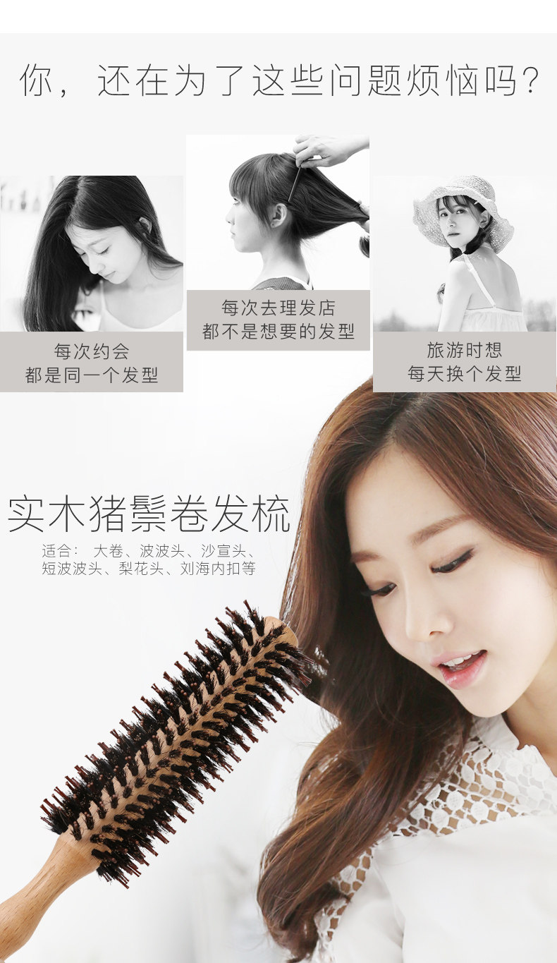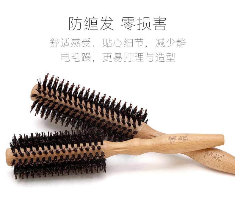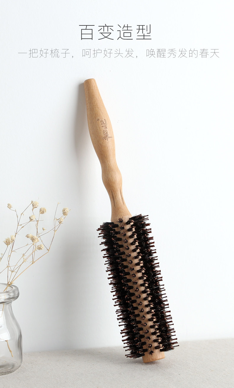 木梳猪鬃毛梳圆滚筒梳造型内扣卷发梳防静电家用长发头梳卷筒梳子