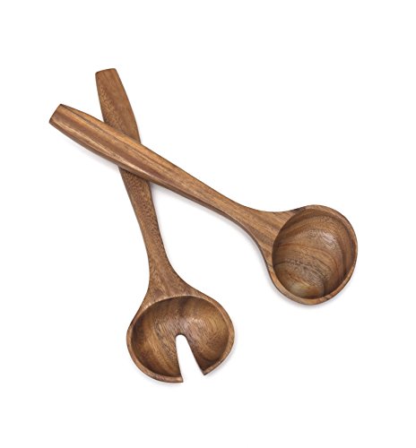 - 1 pair of heavy duty acacia round salad servers