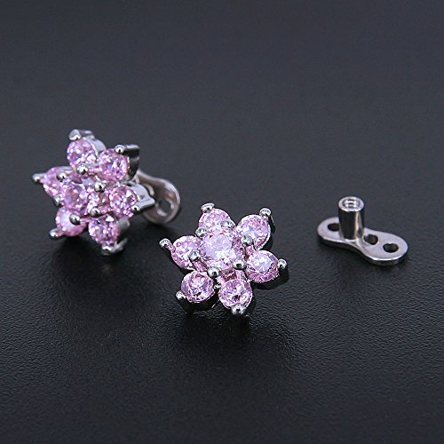 -. Title : 2Pairs Flower Dermal Top Surgical Steel Internally Thread Base Dermal Anchor Skin Piercing Jewelry