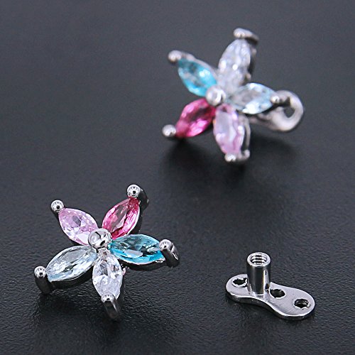 -. Feature : Multiple Colors Choice Dermal Anchor Set, Screw Fit with Surgical Steel Base. Unique Body Jewelry Be Free to Express Your Individuality. / Gauge: 1.2 mm(16g) Internally Threaded for 14 Gauge Anchors, Length : 2mm, Flower size: 8mm and 10mm. / Dermal Anchor Base Made of Hypoallergenic 316 Stainless Steel, Lead and Nickel Free; Not Harm human. High Polish Comfortable to Wear. / Package Included: 2 Pairs Mixed Design Flowers Dermal Piercing Jewelry. / Warm Tips: Please Avoid Wearing It When Sweating a Lot, Swimming, Shower or Sleep etc.