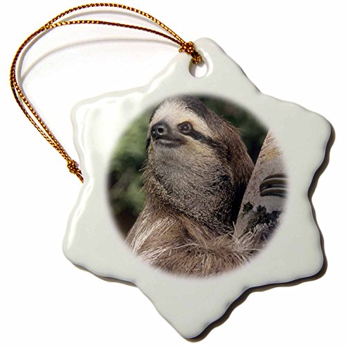 3dRose orn_87216_1 Three-toed Sloth Wildlife, Costa Rica SA22 KSC0126 Kevin Schafer Snowflake Porcelain Ornament, 3-Inch