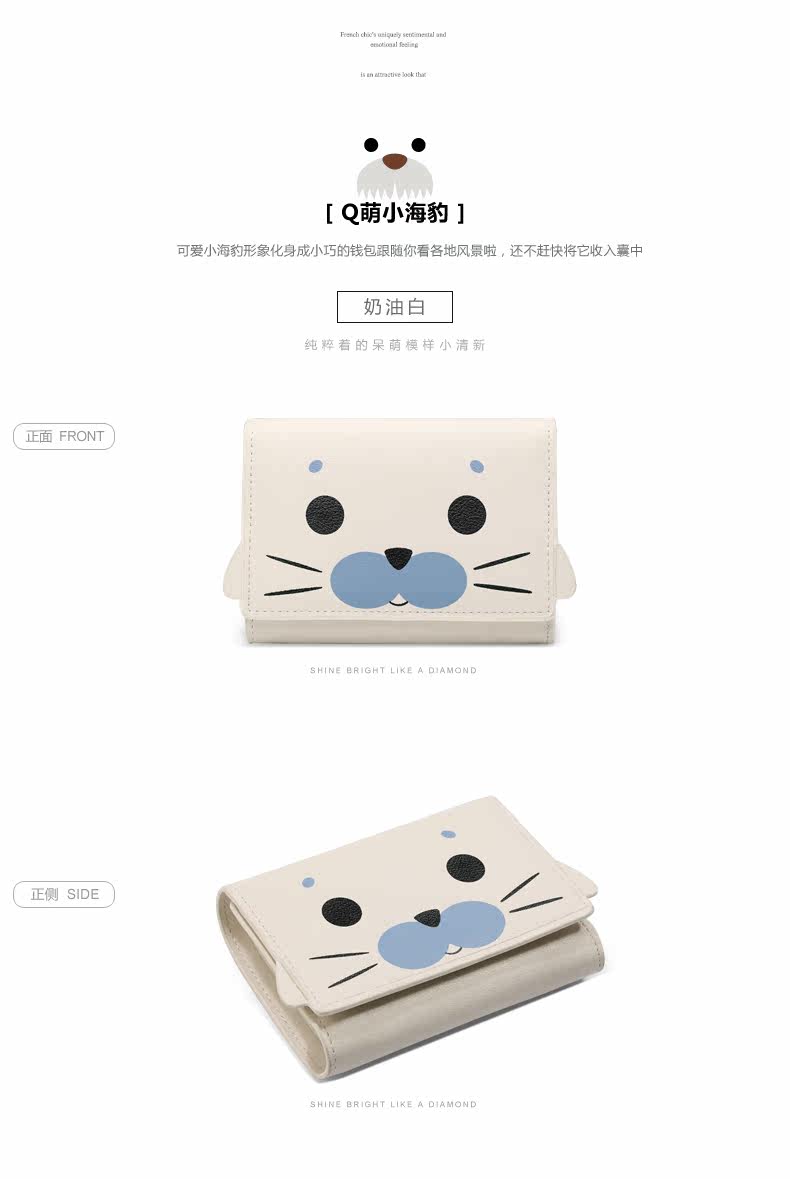 秋季新款女小零钱包 可爱卡通潮动物图案短款钱包
