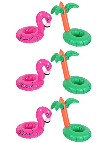 6-Pack Inflatable Palm Tree Flamingo Poolside Drink Holders Coasters