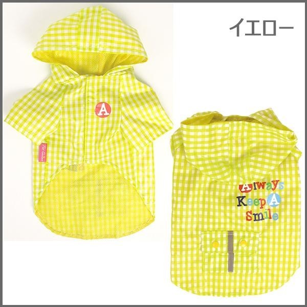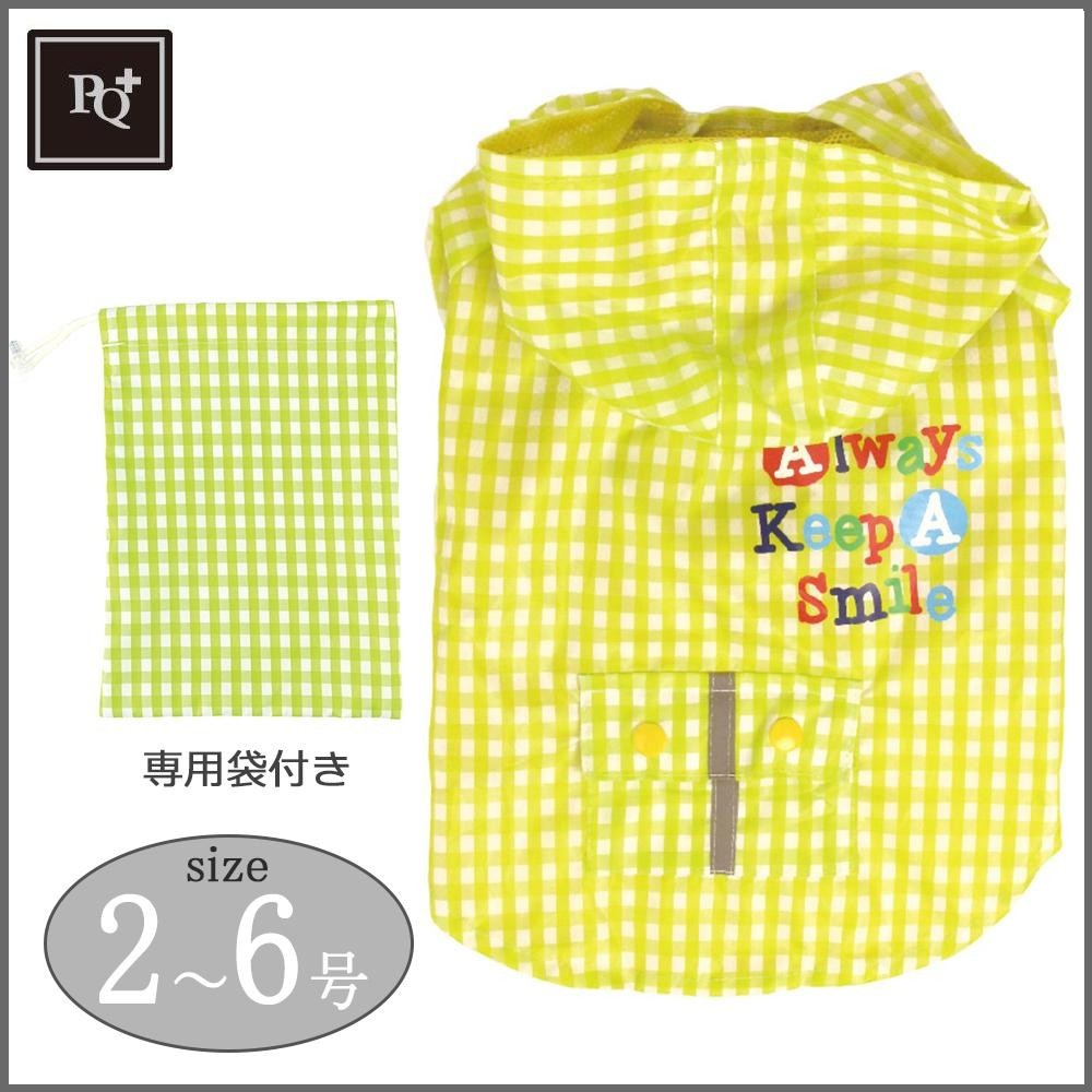 撥水加工を施したペット用レインコート!!大人気のギンガムチェックがとってもキュート♪カラフルなロゴもポイントです。専用袋付き☆