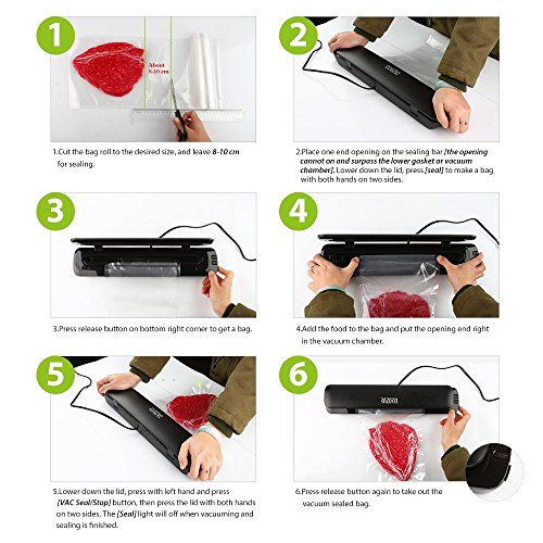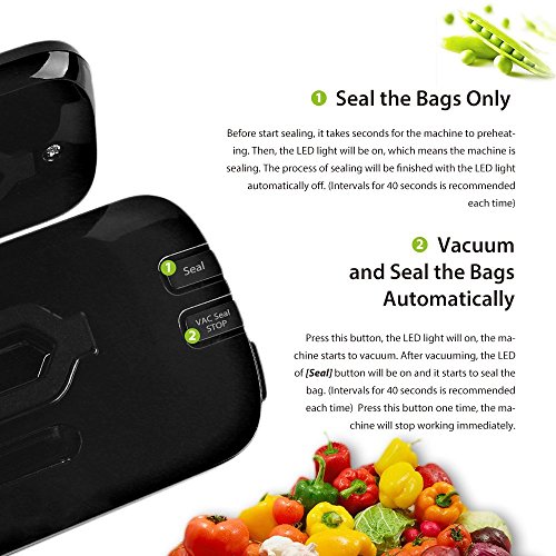✓ENJOY THE PERFECT TASTE:Ideal for vegetables, meat, fish, fruits, corns, chips, even marinated and salted food can be sealed for better preservation. Furthermore, the vacuum sealed food is perfectly ready for sous vide cooking and barbecue.