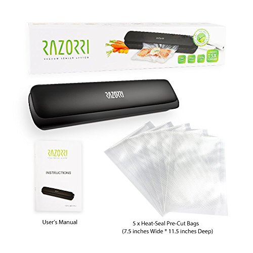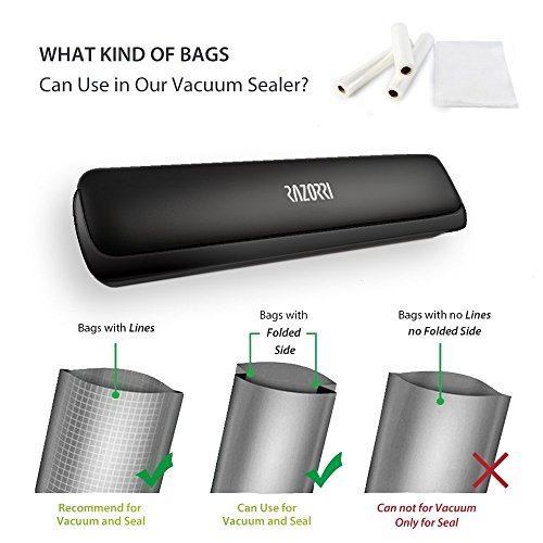 ✓ BUY IN BULK, SAVE MONEY, EAT HEALTHY: The Razorri vacuum sealer provides STRONG and PERMANENT seal with the functions you need keeps food fresh for longer, giving you the ability to buy meats, fruits, and vegetables in bulk, instead of buying fresh food in small, expensive amounts on a daily or weekly basis. *Our product has acquired the ETL certificatication.