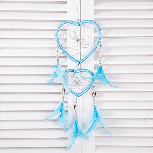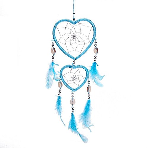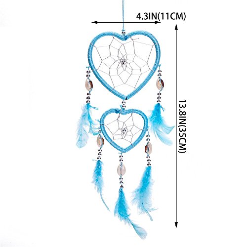 17" Traditional Blue Dream Catcher with Feathers Wall or Car Hanging Ornament Heart Shaped
