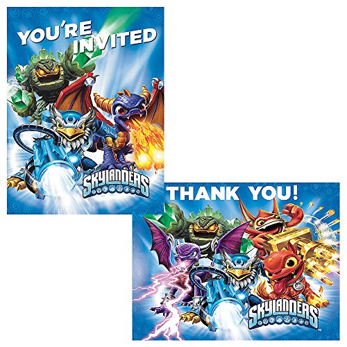 -. Feature : Capture evil, unleash good! Set out on an adventure with these exciting Skylanders characters! Package includes (8) invitations (with envelopes) and (8) thank-you postcards to match your party theme. This is an officially licensed Skylanders product.