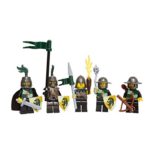 Includes 5 authentic minifigures Dragon knights are equipped with full The Dragons are ready to attack the Knights of the kingdom! Set of 5 fully armed Dragon minifigures are armed and ready for mock battle. Engage the Dragons against the Knight Battle Pack for massive medieval mayhem! Includes 5 authentic minifigures Dragon knights are equipped with full