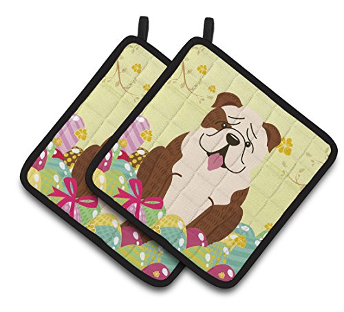 Caroline's Treasures Easter English Bulldog Brindle Pair of Pot Holders, 7.5HX7.5W, Multicolor