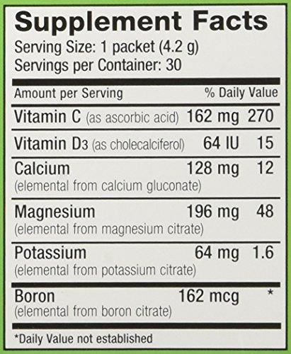 -. Feature : Premium formulation includes vitamin D, boron and vitamin C to facilitate the assimilation, distribution and utilization of calcium / Assists in preventing muscle cramping and helps reduce lactic acid / Mixes easily in water to restore healthy magnesium levels quickly and effectively