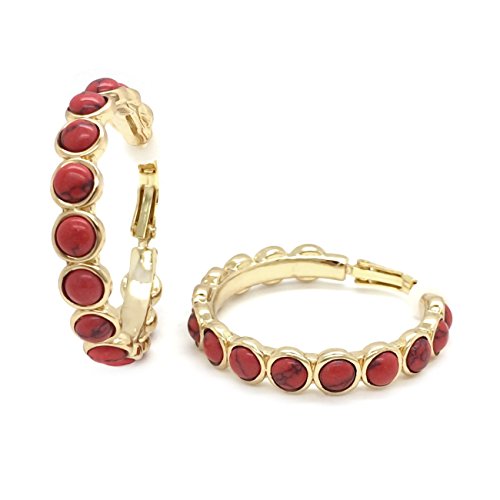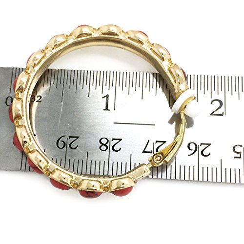 These chic hoops are made of alloy base metal and are set with red resin accents. Clip on backings secured these hoop earrings with ease and comfort. For non pierced ears. These fashion clip on earrings will make the perfect choice for your special someone for Valentine's gift, Christmas gift, Mothers day gift, Birthday gift, Anniversary Gift, or Bridal party gifts.Feature