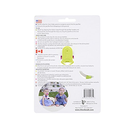 -. Feature : 100% silicone pacifier clip / Safely attaches to babies clothes preventing pacifier from getting lost and dropping on the floor / Select beads glow in the dark making the clip and pacifier easy to find in the dark / No BPA, no phthalates, no cadmium, no lead, no metals