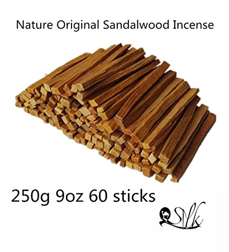 2500 Silk Art 100% Nature Original Wood Sandalwood 10cm Incense Pack 250g 60 Sticks for Yoga Zen Deep Meditation Feng Shui Air Fresh Purifying Cleansing Healing Stress Relief TXYM-250